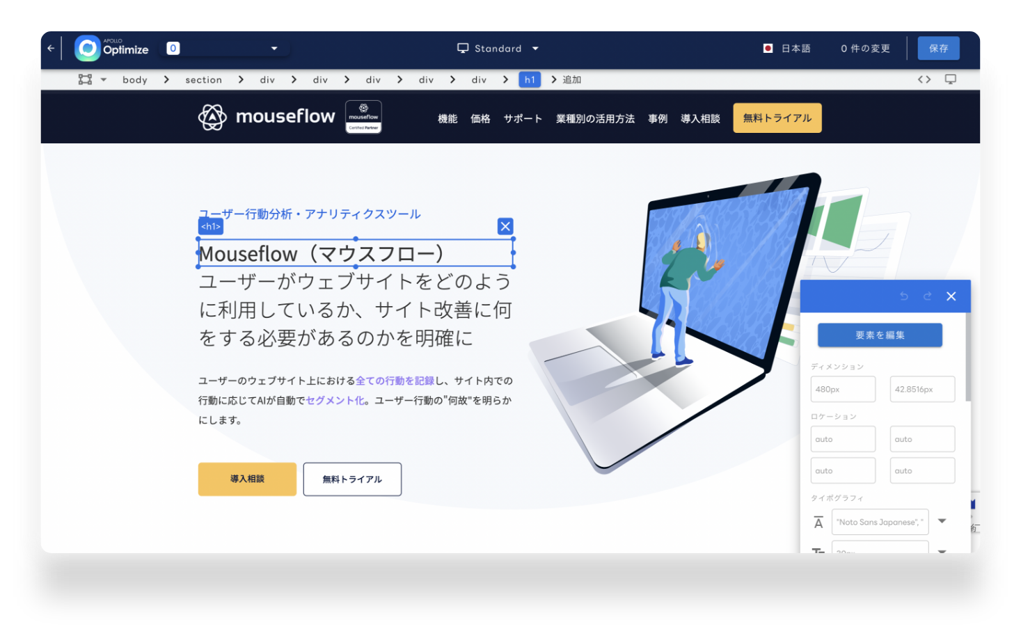 導入をサポートGoogleOptimizeで使っていたウェブサイトの設定などを、APOLLO Optimizeにスムーズに連結させます。